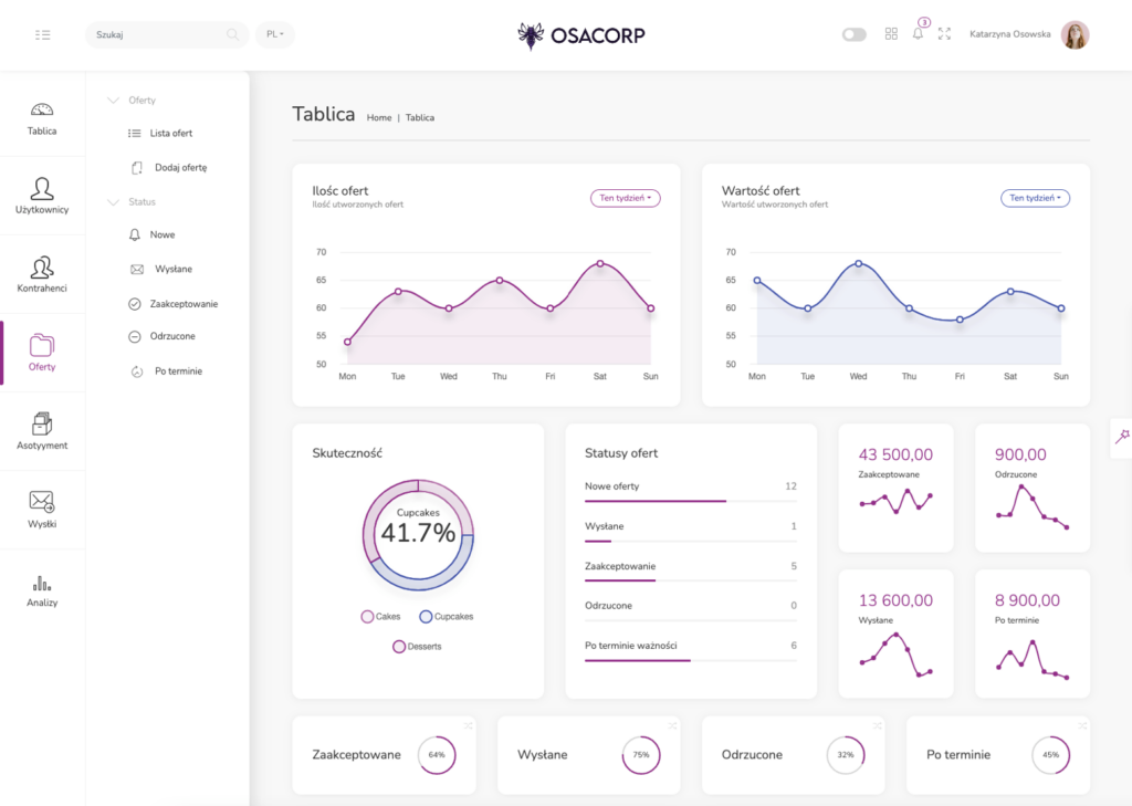 OSA Oferty to innowacyjny system do tworzenia ofert handlowych, który pozwala na szybką i efektywną pracę zarówno handlowców, jak i managerów. Dzięki zaawansowanym funkcjom,